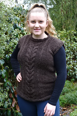 Our Chloe Stepped Hem Tunic with Cables is a long line tunic with a stepped hem; longer at the back than the front; and a cable pattern. Designed to be knitted in our 14 ply Yarn. Suitable for intermediate knitters.