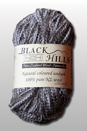 BlackHills Crinkle yarn is a novelty yarn, a marl of dark and light which is particularly effective for lace knitting. It is a fine corriedale sliver played with a fine commercial thread.