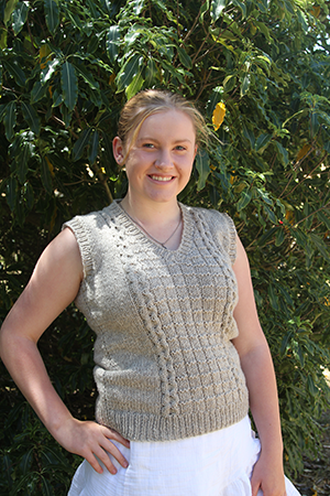 Our Patterned Vest is a cabled vest using our 14 ply yarn.