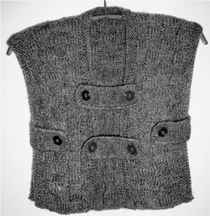 This Magpie Tabard is an exciting contemporary layering garment, knitted in one size but an alteration of the tabs can change the sizing as the child grows. Knitted in a mock basket stitch.